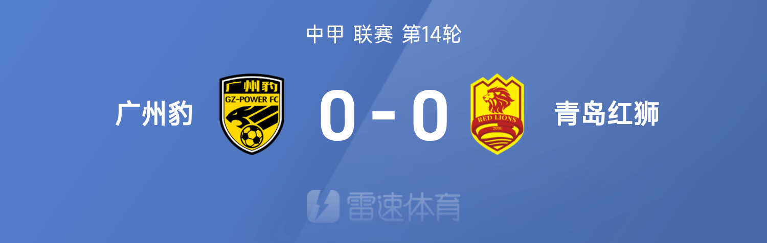 06月29日讯 25赛季中甲联赛第14轮,广州豹0-0互交白卷闷平青岛红狮。
