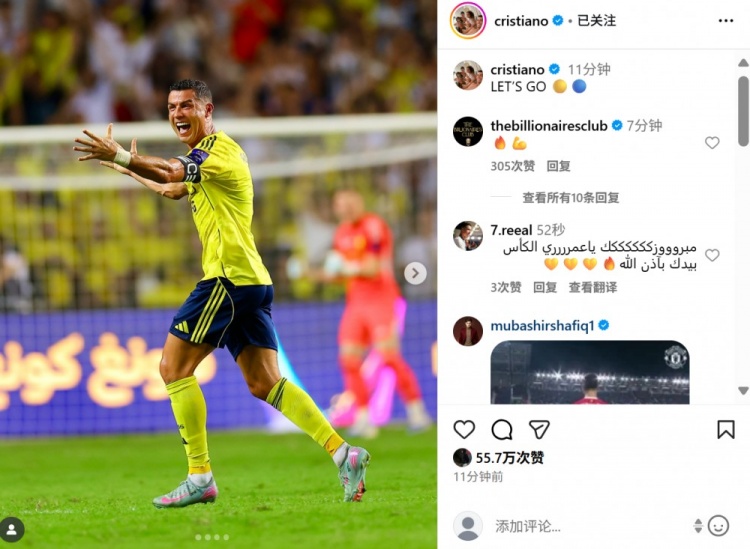 C罗关键助攻助力菲利克斯破门得分,球队在少一人作战的逆境中锁定胜局。赛后C罗通过社交媒体发布夺冠庆祝瞬间,并配文"前进!"鼓舞全队。